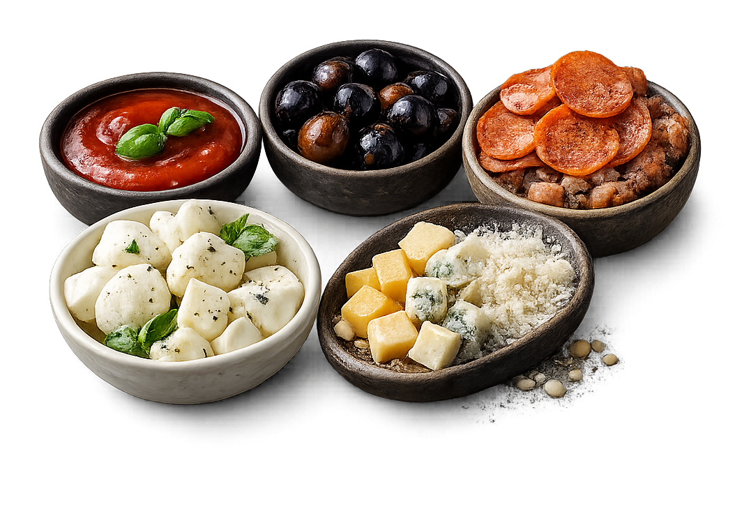 Blat dublu, sos roșii Mutti, mozzarella, 5 ingrediente la alegere